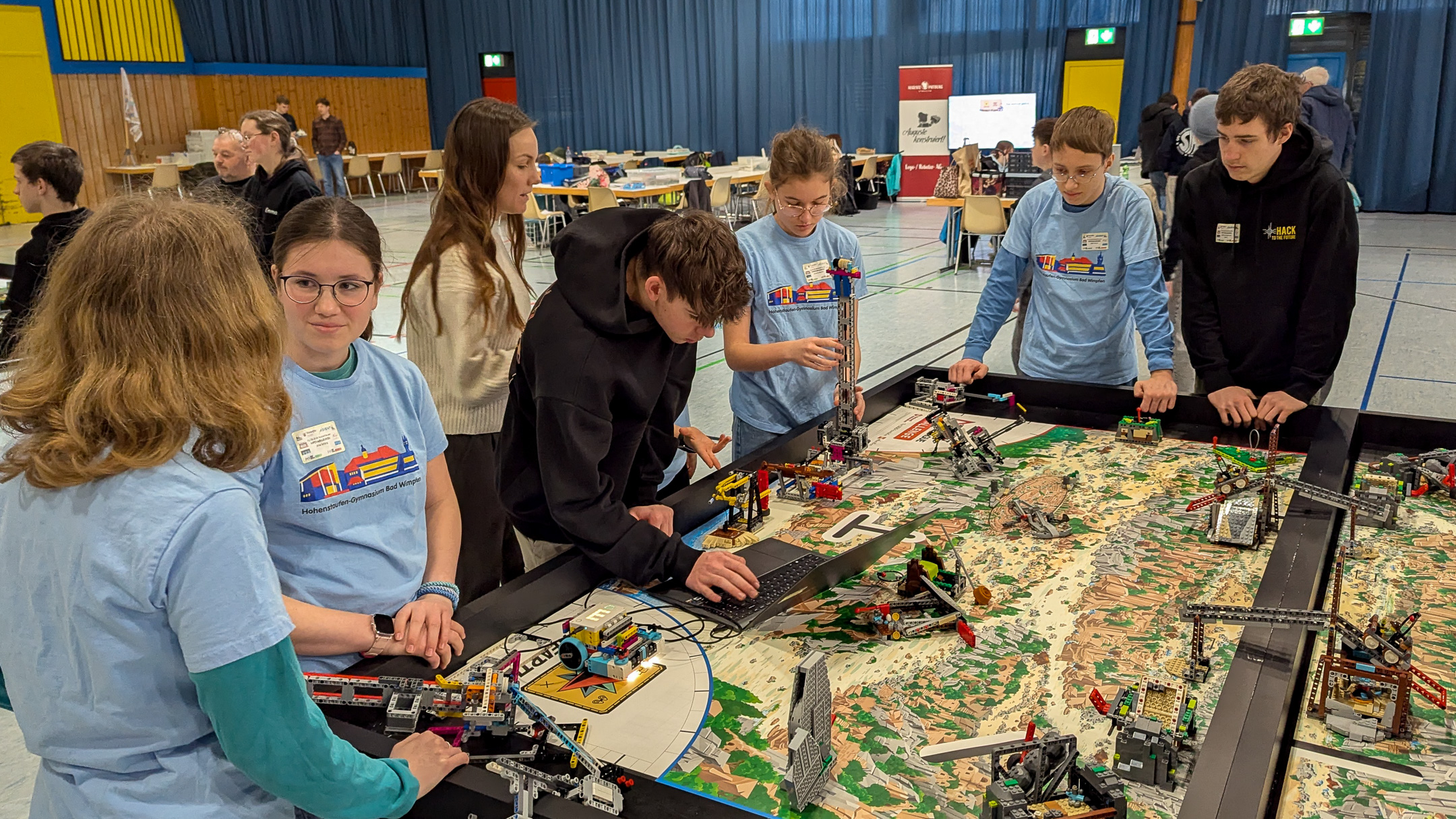 »All In« war die Devise: Nach dem Regionalwettbewerb einen Monat zuvor entschieden sie sich, ihre Strategie komplett neu zu denken, um mit den besten Teams aus Süddeutschland mithalten zu können, die um den Einzug ins Bundesfinale in Leipzig kämpften. Alles auf Anfang – obwohl das Risiko bestand, dass am Ende nichts funktioniert. Auch am Wettbewerbstag selbst bewiesen sie starke Nerven. Als die ersten Anläufe nicht sofort klappten, gaben sie nicht auf. Sie analysierten in jeder freien Minute Probleme, verbesserten ihre Programme und optimierten ihren Roboter bis zur letzten Runde: Kleine Veränderungen wie ein zusätzlicher Dämpfer auf einem Roboteraufsatz oder eine Drehung um 34° statt 35° machten dabei den entscheidenden Unterschied.