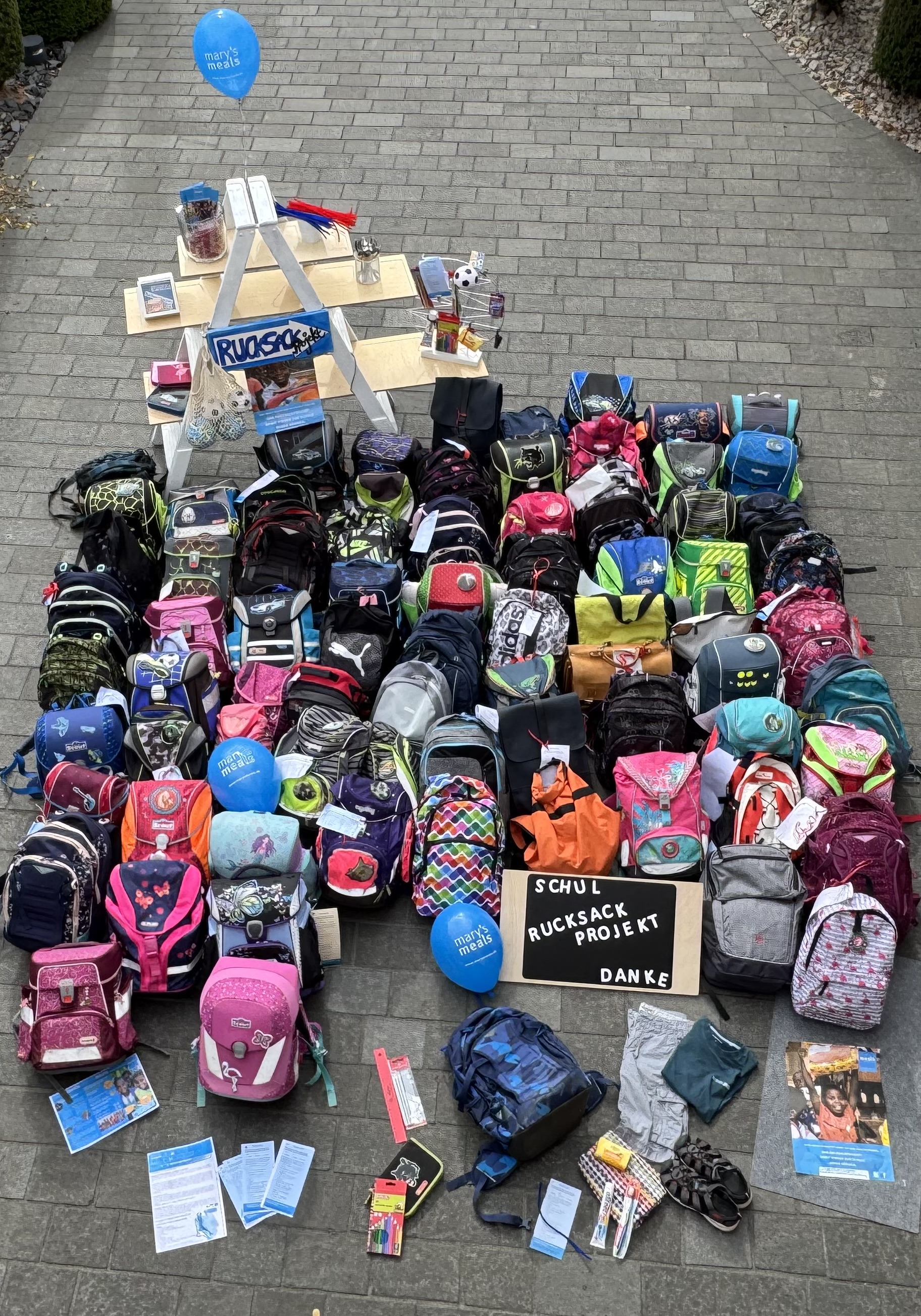 Dank der Initiative von Frau Waschek beteiligte sich unsere Schule in diesem Jahr am Rucksackprojekt von Mary’s Meals Deutschland. An zwei Sammeltagen wurden von den Eltern insgesamt insgesamt 84 gebrauchte Rucksäcke und Schultaschen abgegeben.